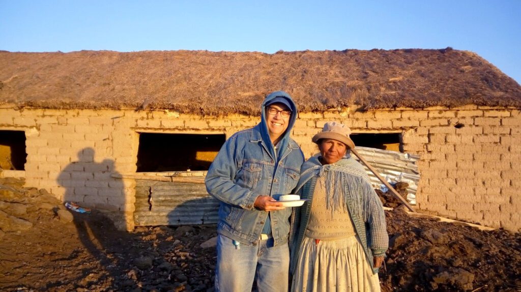 Halff Senior Vice President Matt Craig visits with a Culli Culli Alto resident. “You get more out of it, I think, when you are actively involved in it,” Matt says of the project in Bolivia.